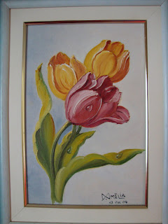 Também gosto de pintar, isso não faz de mim uma pintora, é claro! Mas me faz um bem incalculável! Depois que as meninas nasceram, não me atrevi mais a começar nenhum quadro novo. Mas espero recomeçar logo logo. Estes são apenas os que sobraram em casa. Outros foram dados de presente, mas não tirei fotos.
